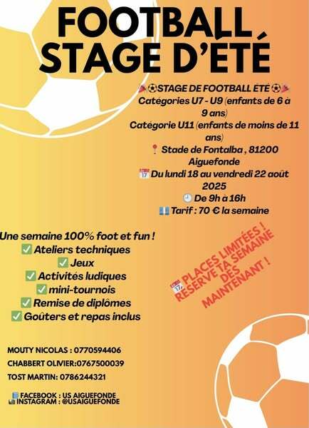 Le club lance son premier stage d été du 18 au 22 août 2025 de 9h00 à 16h00.